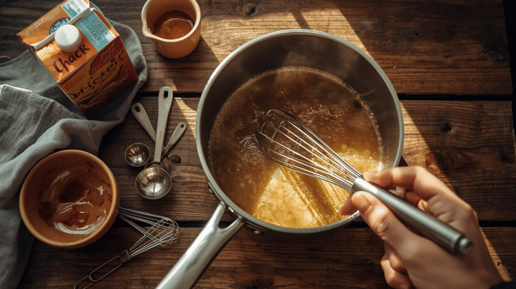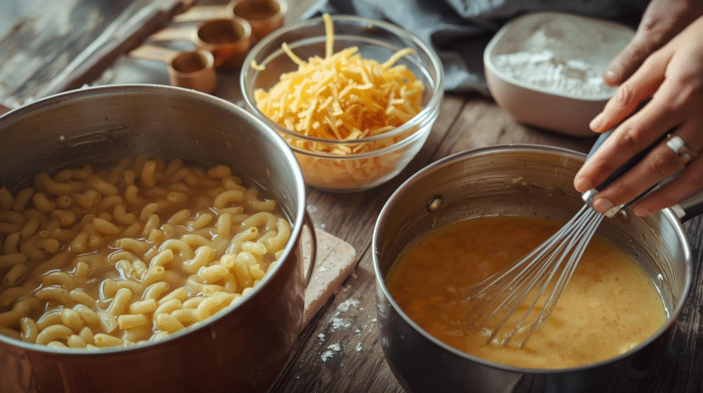 - Make a roux with butter and flour, slowly whisk in milk until thickened.