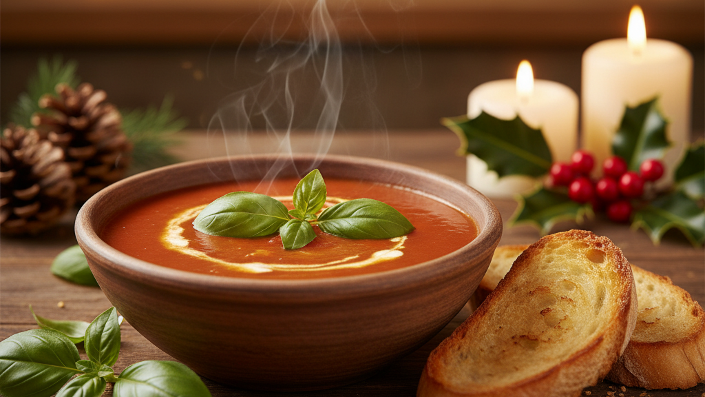 A warm bowl of tomato basil soup is pure Christmas comfort. It’s silky, fragrant, and perfect with toasted bread.
