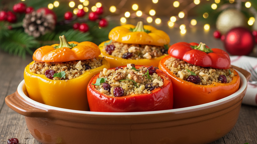 Colorful and festive, these stuffed peppers are as beautiful as they are delicious. The mix of quinoa, nuts, and cranberries adds a playful twist to your dinner table.