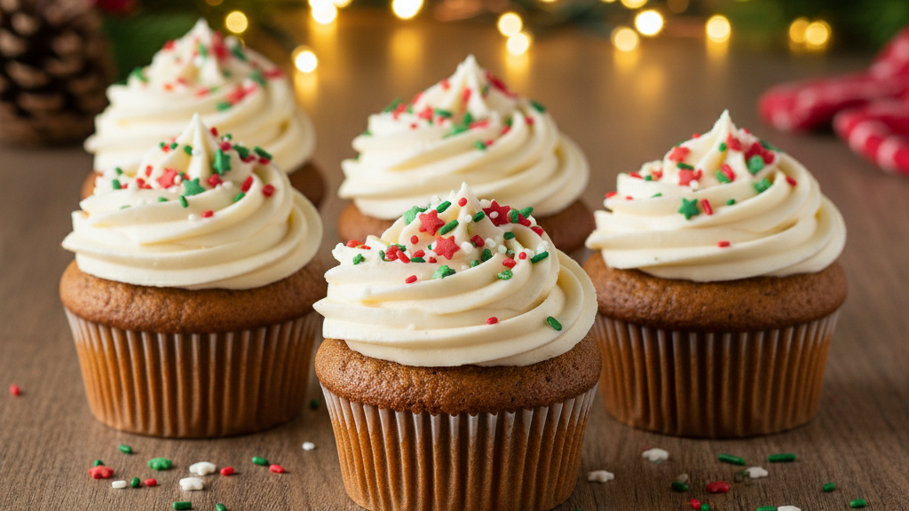 These cupcakes are the sweetest way to end your vegetarian Christmas recipes feast — soft, spiced, and full of cheer.